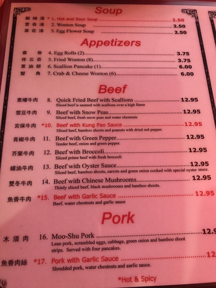 The menu features standout options like the Mongolian BBQ Dinner, which includes white rice and special Chinese pancakes, for just $21.95, or the budget-friendly Lunch Special at $16.05. For seafood lovers, delightful dishes like Kung Pao Shrimp and Sweet and Sour Shrimp offer a delicious twist on classic favorites.